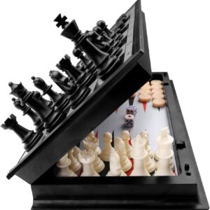 3 in 1 Chess Checkers Backgammon Set, KAILE Magnetic Chess Travel Magnet Chess with Folding Case 13″