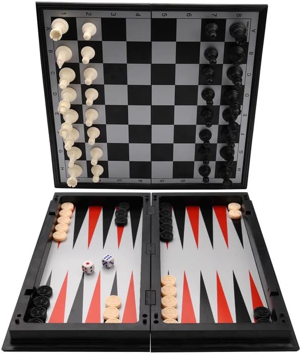 3 in 1 Chess Checkers Backgammon Set, KAILE Magnetic Chess Travel Magnet Chess with Folding Case 13″