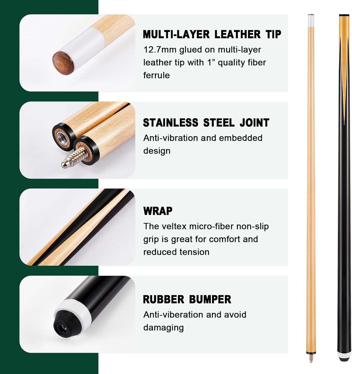 - Trusted Material: this pool cue balls set is composed of quality resin, smooth and reliable, and the pool table sticks are made of quality white wood, solid and sturdy, not easy to break, deform or fade, can serve you for a long time