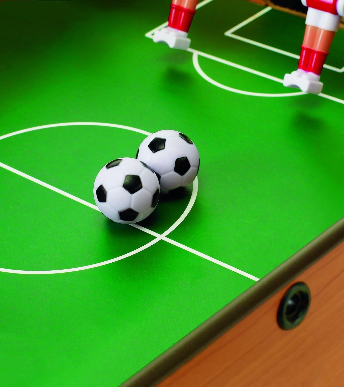 - REAL LIFE ACTION- Easily enjoy real life foosball action from any room in your house. The tabletop version of this exciting game makes it easy to perfect your shooting skills, goalie blocks, 360 degree spins, and more!