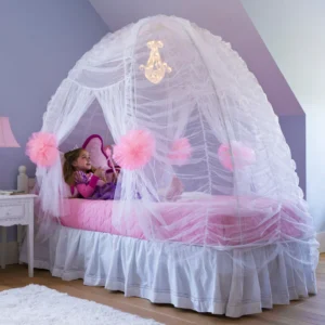 Fairy-Tale Bed Tent With Light-Up Beaded Chandelier
